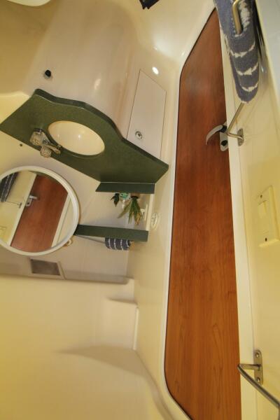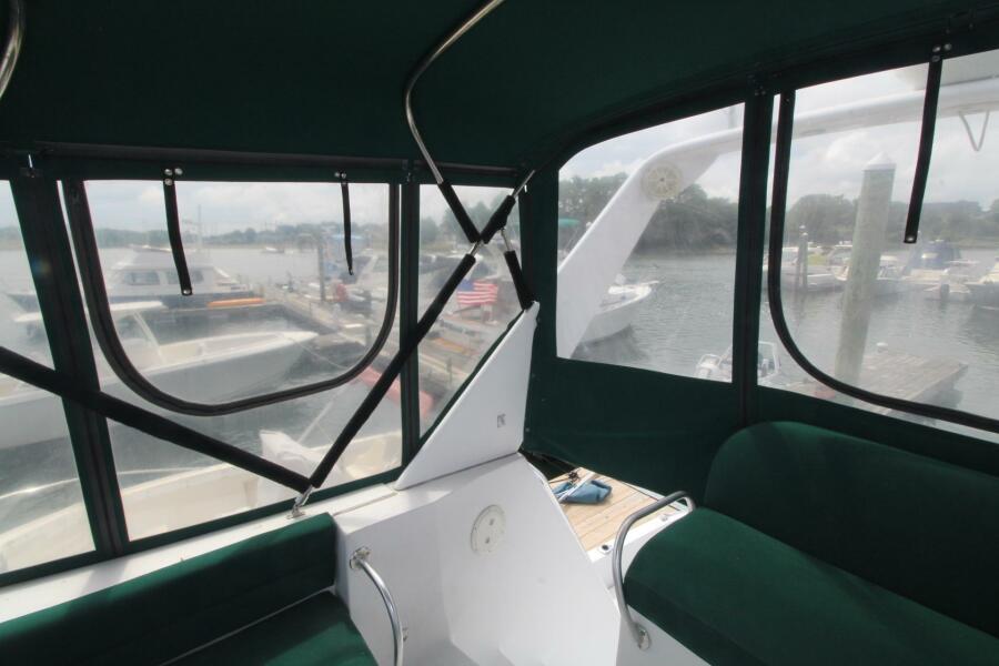 Good looking, stylish profile with a large flybridge layout with walk down molded in steps from bridge to foredeck, huge spacious one level 2 stateroom interior,,good size cockpit with molded in bench seating port and starboard,,the 31 MAINSHIP SEDAN BRIDGE has it all in an unbelievably well layed out 31 foot boat. Probably the largest open interior layout that you'll ever find in a 31 foot boat. This boat features air conditioning/heat; full electronics including Radar,,Garmin GPS,VHF Radio,Depth finder/fish finder; full enclosure; swim platform; anchor windlass; stereo etc. Sleeping accommodations for 6 at a terrific price !